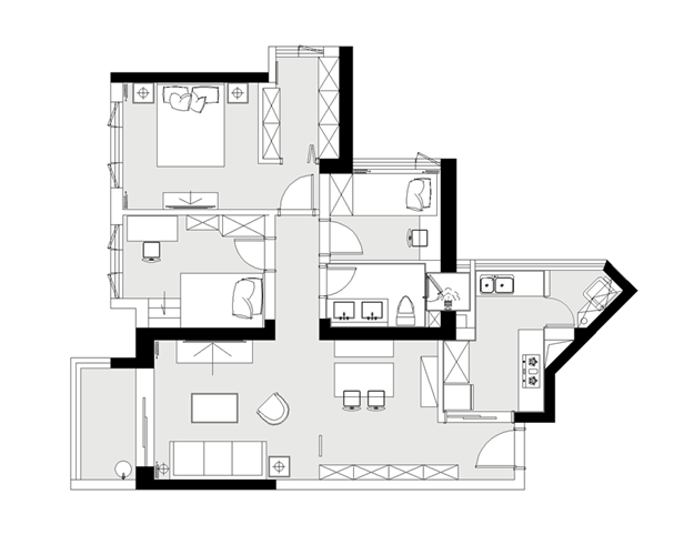 簡(jiǎn)潔現(xiàn)代的硬裝,搭配精致輕奢的軟裝,營(yíng)造了一個(gè)低調(diào)不張揚(yáng)又富有生活情趣的生活空間。