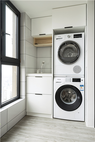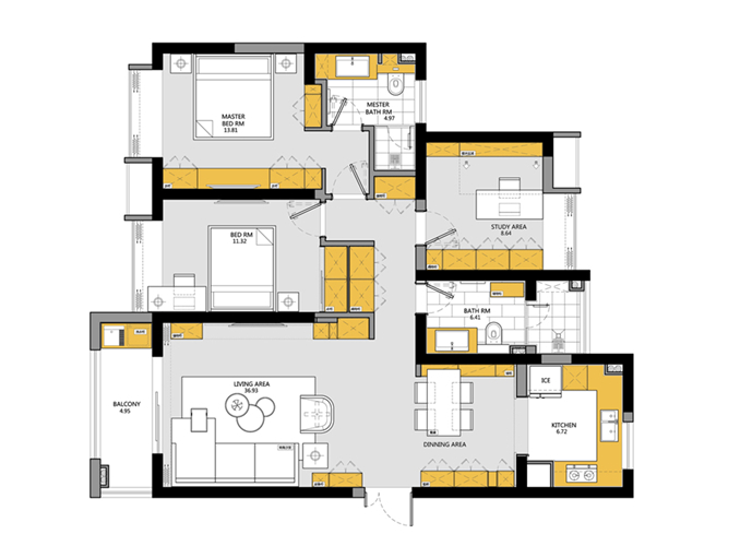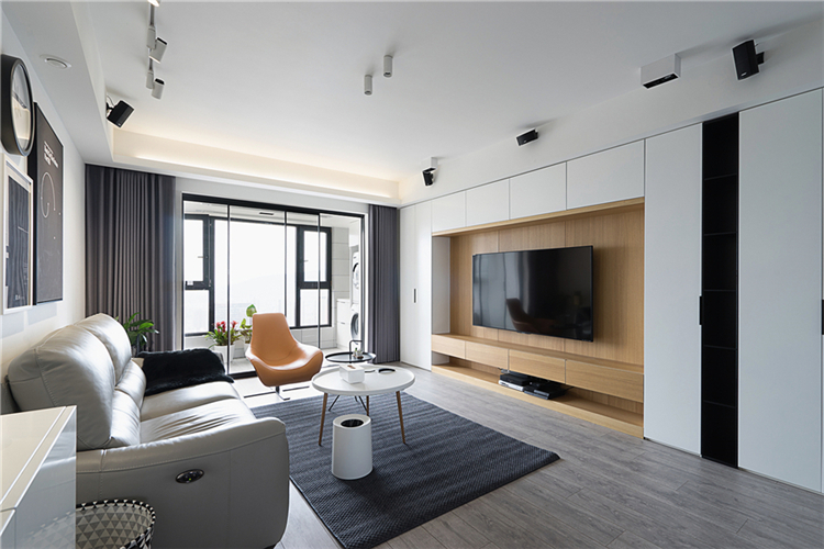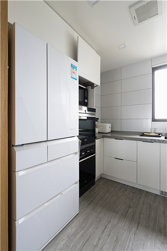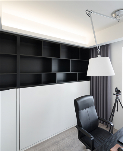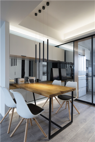 設(shè)計師推翻所有原有結(jié)構(gòu)功能分區(qū)進(jìn)行重組,共通的客餐廳和書房內(nèi)退的陽臺開放式廚房等等,功能區(qū)全部朝南