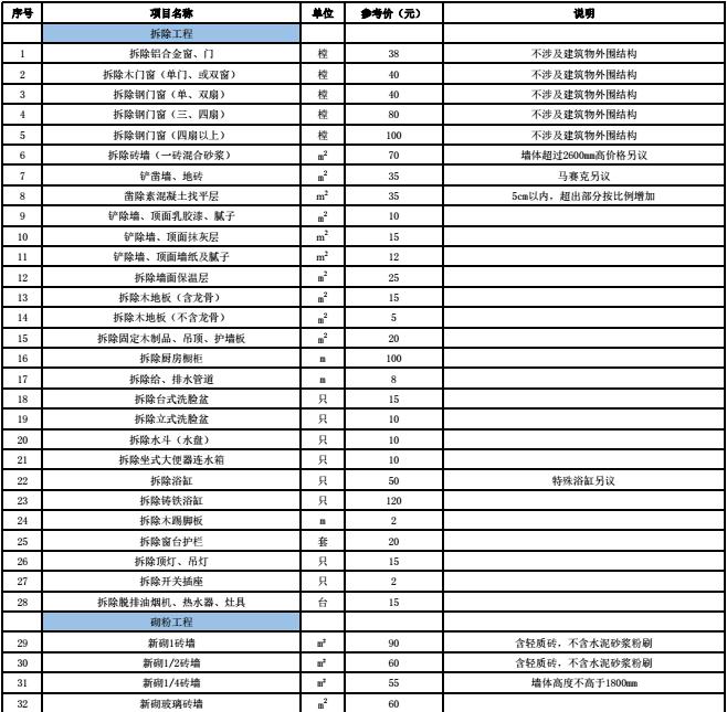 上海市住宅裝飾裝修工程人工費(fèi)參考價(jià)(2016版)