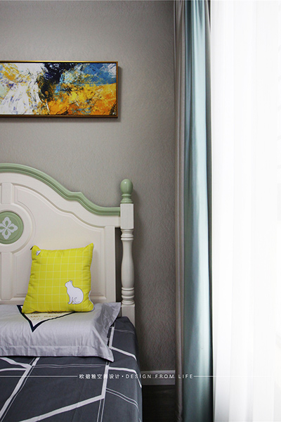 灰色調(diào)突出時(shí)尚精致的感覺,搭配簡(jiǎn)約的元素軟裝,和諧而舒適。考慮到健康的視覺感,兒童房主要以淡綠色為基色調(diào),搭配淺灰色的壁紙自然舒適,給孩子創(chuàng)造一個(gè)簡(jiǎn)單溫馨的學(xué)習(xí)環(huán)境。