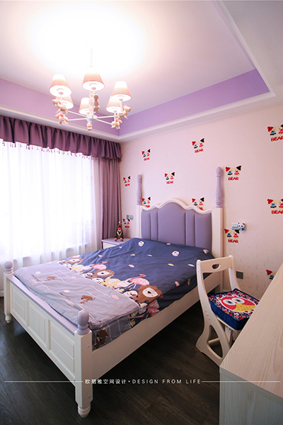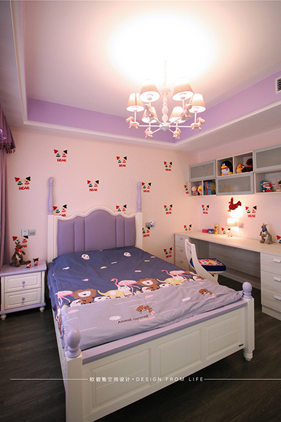 在紫色的調(diào)色盤里加入了吻合小公主氣質(zhì)的粉色系,整體線條更為融合,整體空間格局開放而靈動(dòng)。