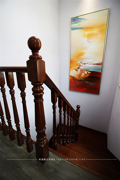 實(shí)木樓梯有著獨(dú)特的紋理和典雅的氣質(zhì),色澤柔和,給人以華麗和尊貴之感。