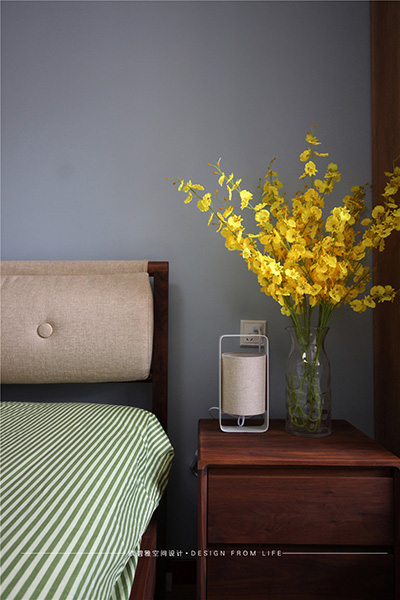 臥室以藍(lán)灰色調(diào)為主,營造大氣莊重的空間格調(diào),舒適的棉麻床品搭配同色系的靠包保證優(yōu)質(zhì)睡眠的同時(shí),也為空間增添了許多味道。
