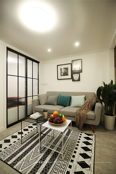 因為是小戶型的房子,后期也需要招待朋友,設(shè)計師為了使整體空間感寬闊,在風(fēng)格搭配上采用黑白灰為主的現(xiàn)代設(shè)計,細節(jié)裝飾上選用暖色調(diào)進行提亮空間,打造一個舒適溫馨的浪漫空間。