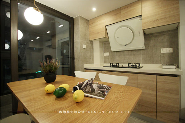 設(shè)計師利用有限的空間創(chuàng)造無限的可能,將客廳、餐廳、廚房進行三者合一,不僅可以避免各種邊際空間的共同使用,還可以達到空間使用的最大化,視覺互通,空間感擴大。為了保證后期的油煙擴散,設(shè)計師在客廳與餐廳和廚房之間增加了移門,既保證了空間寬闊又控制了油煙問題,使整個空間既有靜謐詩意,更有恬然的自然氣息。