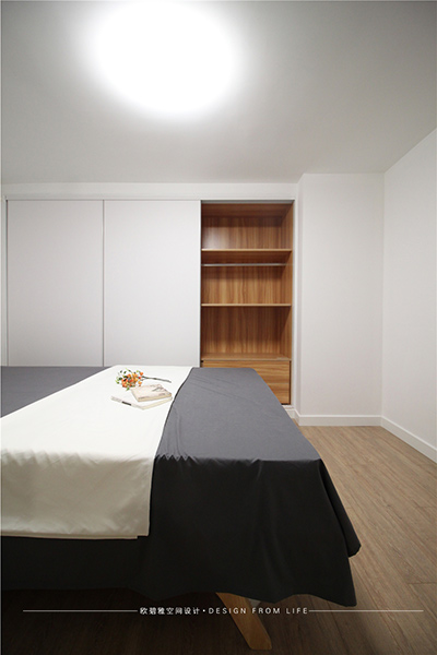 主臥和次臥的隔墻使用新型的鈦合金材料和鋼化膜代替了傳統(tǒng)磚墻和白色的乳膠漆,視覺上給人一種開闊明亮的感覺。主臥的陽臺設(shè)計師將落地抬高做成了休閑的榻榻米,整體的采光通風(fēng)也恰當(dāng)好處,有效的保護業(yè)主的私密性,又能解決業(yè)主居住空間的大問題。