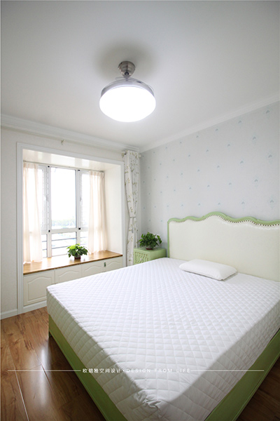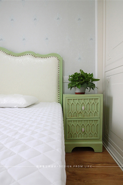 臥室作為休息區(qū)域,在布置上主要以溫馨、舒適為主,沒有繁瑣復雜的裝飾,搭配簡潔的柜門、床品,營造出靜謐和諧的氛圍,青綠色櫥柜又讓臥室看上去更加靈動清新。