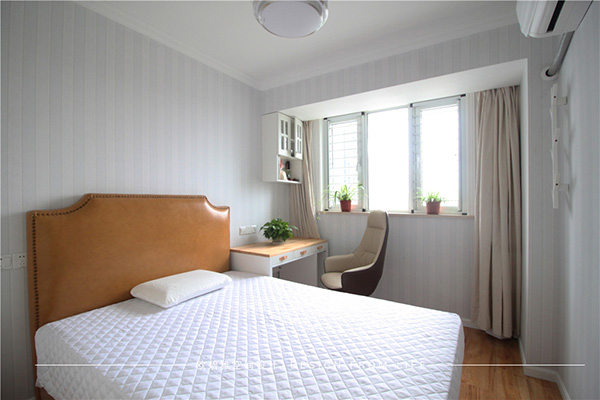 女主的衣服包包比較多,希望有足夠的收納和儲存空間,設計師經(jīng)過測量勘察結構后,調(diào)整了主臥的使用面積,增加公用儲物空間,房間里墻面也做了衣櫥增加收納,女主再也不用擔心衣服沒地方放了。