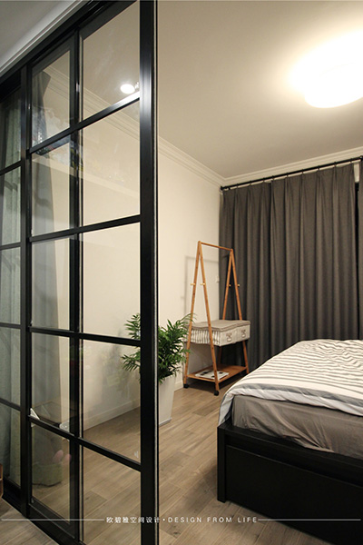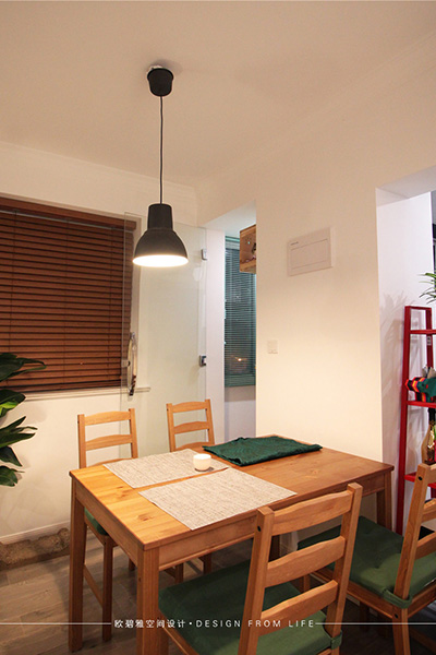 房間里的整個(gè)家居是以宜家裝修風(fēng)格為主,因?yàn)槭切粜?,寸土寸金的房子,設(shè)計(jì)師薛剛非常合理利用了每一個(gè)空間,即可以起到容納的作用,又不會(huì)讓整個(gè)房間給人的視覺感覺太擁擠。清新的木質(zhì)家具與布藝家具的結(jié)合,搭配幾盆綠色植物,不僅可以凈化空氣,吸收甲醛,而且使整個(gè)房間呈現(xiàn)出一種優(yōu)雅,寧靜,溫馨的感覺。